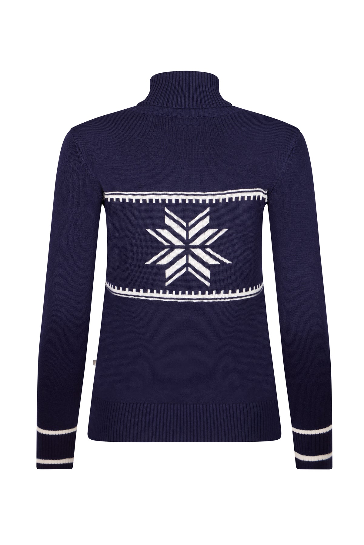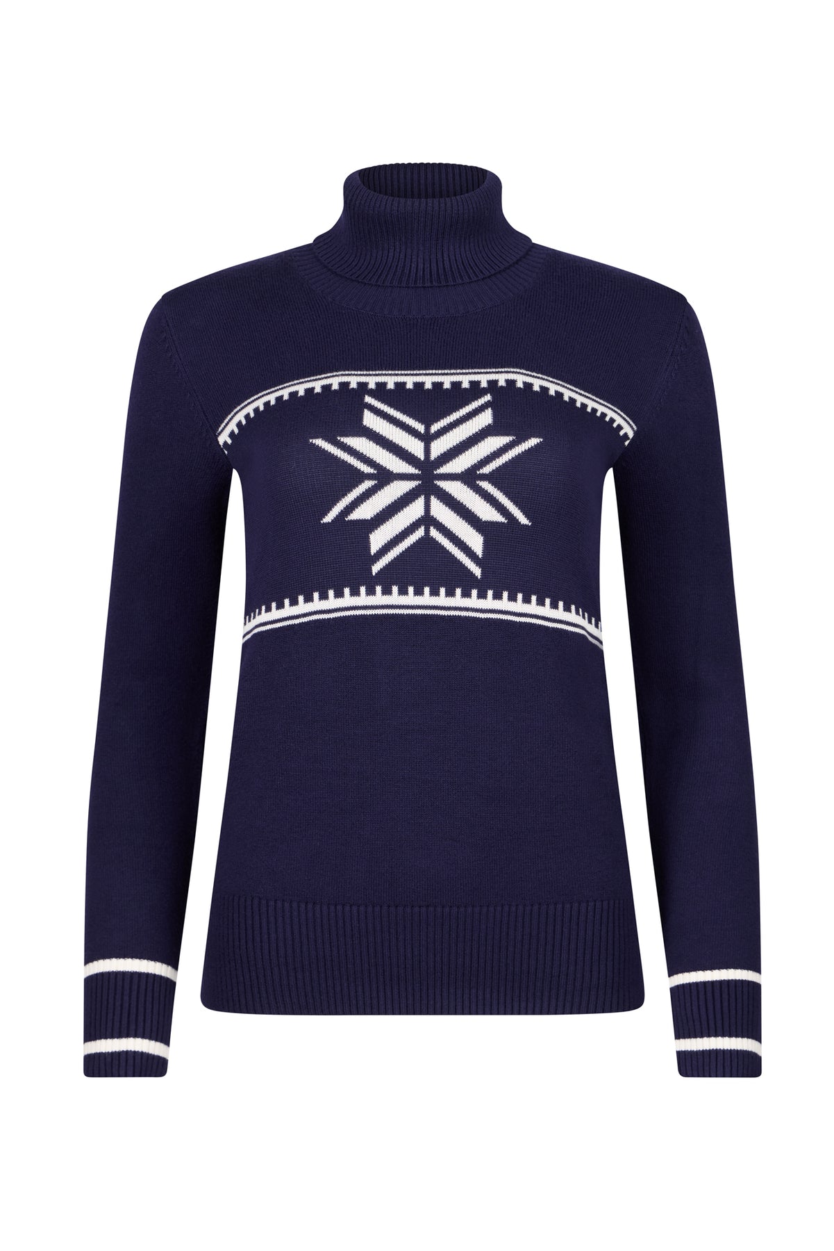 Slim fitting jumper with roll neck and snowflake design featuring luxurious soft yarn, perfect for wearing on and off the slopes.  * Intarsia knit to front, back and cuff * Slim fit * Roll neck * Long sleeves * Snowflake motif * Machine washable * Matching family items available